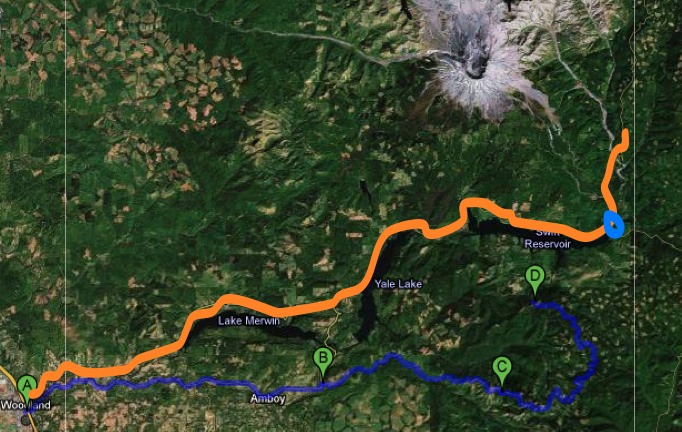 We were headed to Siouxon Creek (pronounced "Susan"), in Gifford Pinchot National Forest. Here is how our formerly-trusty guide book directs you to get there: